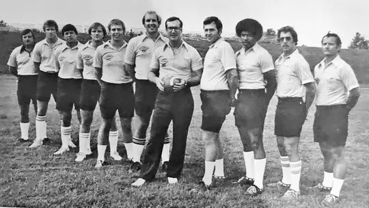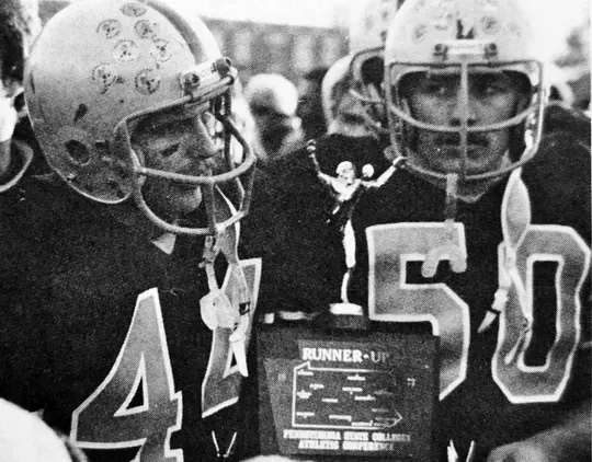 “Sure, he was as tough as all hell, and there were very tough times, but there was a positive nature that was on the field, and the camaraderie. He would not stand for anything but that,” said Don Humphrey ’80, an All-PSAC East wide receiver and sophomore on the 1977 team. “Hundreds of people fell by the wayside over the four years, and coach would always talk about those guys and remind us what it took to keep up with what it took to be a champion. To hear that message, to know that you are in a certain group of four-year people to make it through that time, it was very gratifying.”