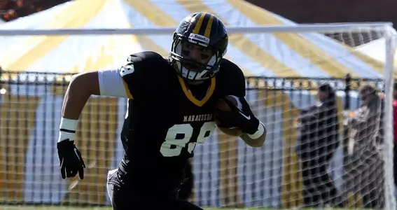 2013 (Game-by-Game): Started all 11 games as the Marauders' tight end...Emerged as a reliable pass catcher and in-line blocker...An important part of the nation's top kick-blocking unit...Totaled four blocked kicks including two against LIU Post in the season opener...Finished the season with 14 catches and 165 yards...Ranked third on the team in receptions and third in yards...Caught three passes at Mercyhurst in week two...Caught a career-high four passes for 79 yards against Shippensburg...Hauled in a long reception of 37 yards in the game...Caught three passes including his first TD grab against Lock Haven on Oct. 26...Recipient of team's most improved player award.